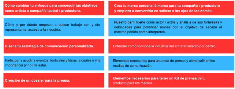 - Auténticos profesionales en activo te guiarán en el entrenamiento y te darán herramientas prácticas que podrás utilizar cuando te salga un trabajo o un casting.